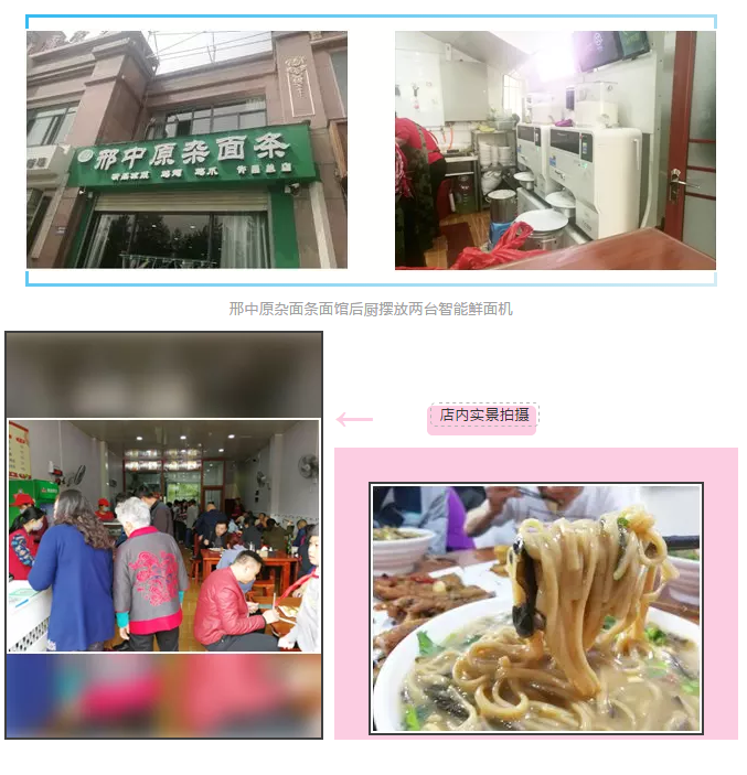以邢中原雜糧面面館為例,擺放2臺智能鮮面機,日銷售500多碗面條。